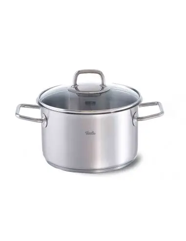 Zestaw Fissler Viseo wykonany z wysokiej jakości nierdzewnej oraz wytrzymałej stali, odpornej na zarysowania wnętrzem garnka składa się z: