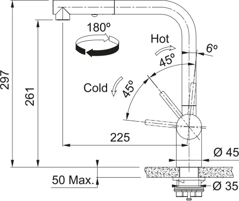 | Zakres obrotu wylewki | 180° |