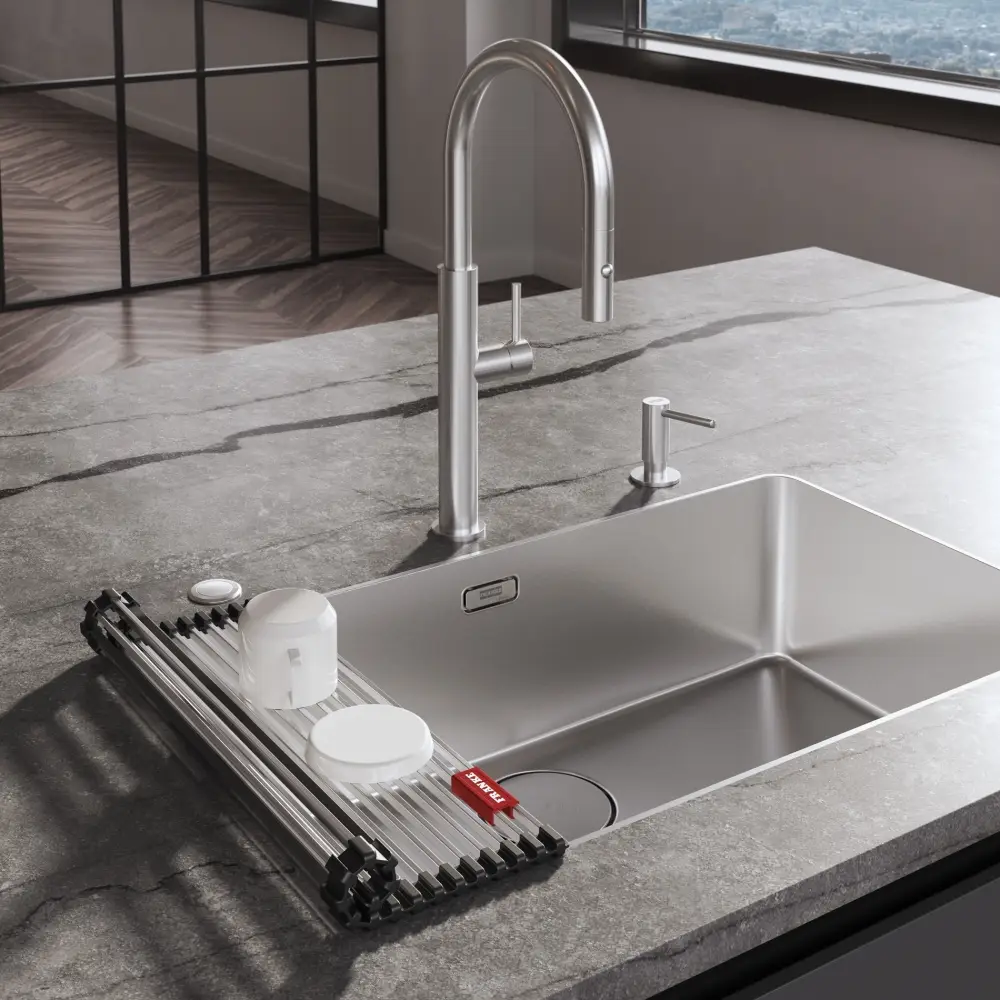 Pescara J pull-out spray w wykończeniu ze stali szlachetnej to nowoczesna bateria, która łączy minimalistyczny design z praktycznymi rozwiązaniami. Dzięki wyciąganej wylewce i funkcji prysznica doskonale sprawdza się zarówno podczas gotowania, jak i codziennego sprzątania.