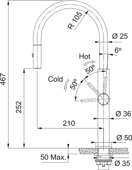 | Zakres obrotu wylewki | 360° |