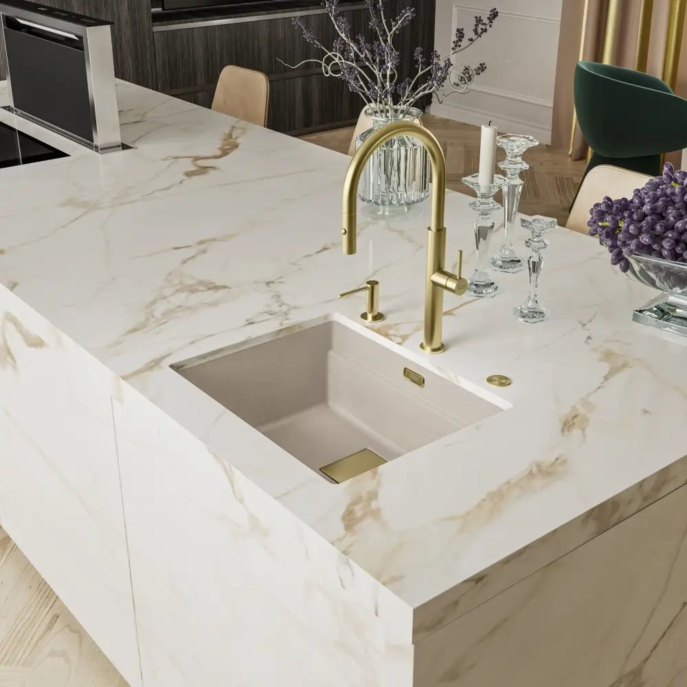 Pescara J pull-out spray to elegancka bateria kuchenna, która łączy minimalistyczną formę z praktycznymi rozwiązaniami. Całość nadaje jej nowoczesny, luksusowy charakter, a wyciągana wylewka z funkcją prysznica zapewnia pełną wygodę użytkowania.