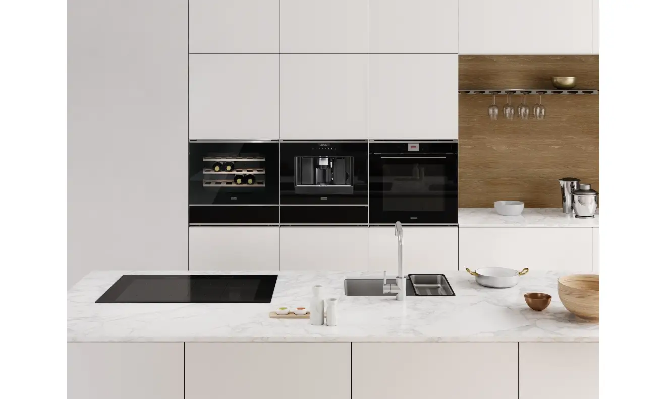 Chłodziarka do wina do zabudowy Mythos to eleganckie urządzenie, które łączy wykończenie z czarnego szkła i stali szlachetnej. Ta chłodziarka zapewnia idealne warunki przechowywania wina, jednocześnie dodając stylu do Twojej kuchni.