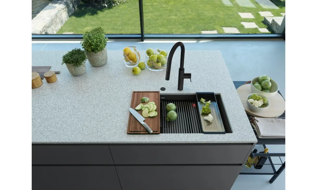 Zlewozmywak do podbudowy z linii Kanon posiada dwie funkcjonalne komory, które znacznie ułatwią utrzymywanie czystości w kuchni. Duża powierzchnia umożliwi umycie dużych garnków lub blach do pieczenia, mniejsza to idealna powierzchnia do mycia sztućców. Na szczególną uwagę zasługuje wewnętrzna krawędź, która pozwala na komfortowe korzystanie z rollmaty i wkładki ociekowej. Rozwiązania te umożliwiają dwa poziomy pracy, zwiększając tym samym funkcjonalność komory.