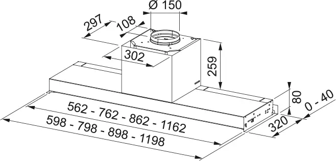 Okap do zabudowy AQ - Sense FSAS A90 BK/XS Stal szlachetna / Czarne szkło