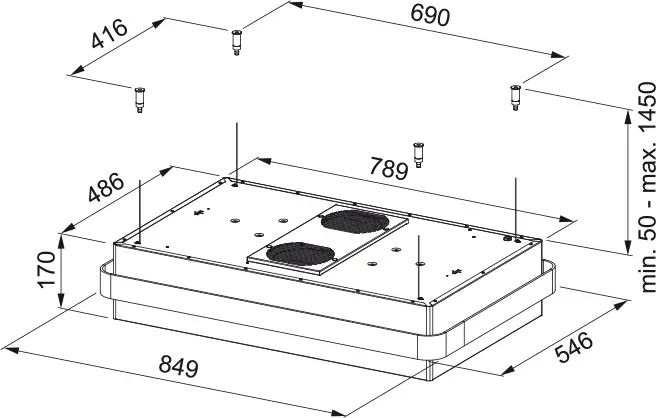 Okap FMYS BK/CP F80 KL oferuje 3 standardowe biegi i jeden intensywny, sterowane przyciskami lub pilotem zdalnym. W zestawie znajdują się filtr przeciwtłuszczowy aluminiowy oraz filtr węglowy, zapewniające skuteczną filtrację. Model pracuje cicho i efektywnie, z możliwością aktywacji wyłącznika czasowego (30 minut).