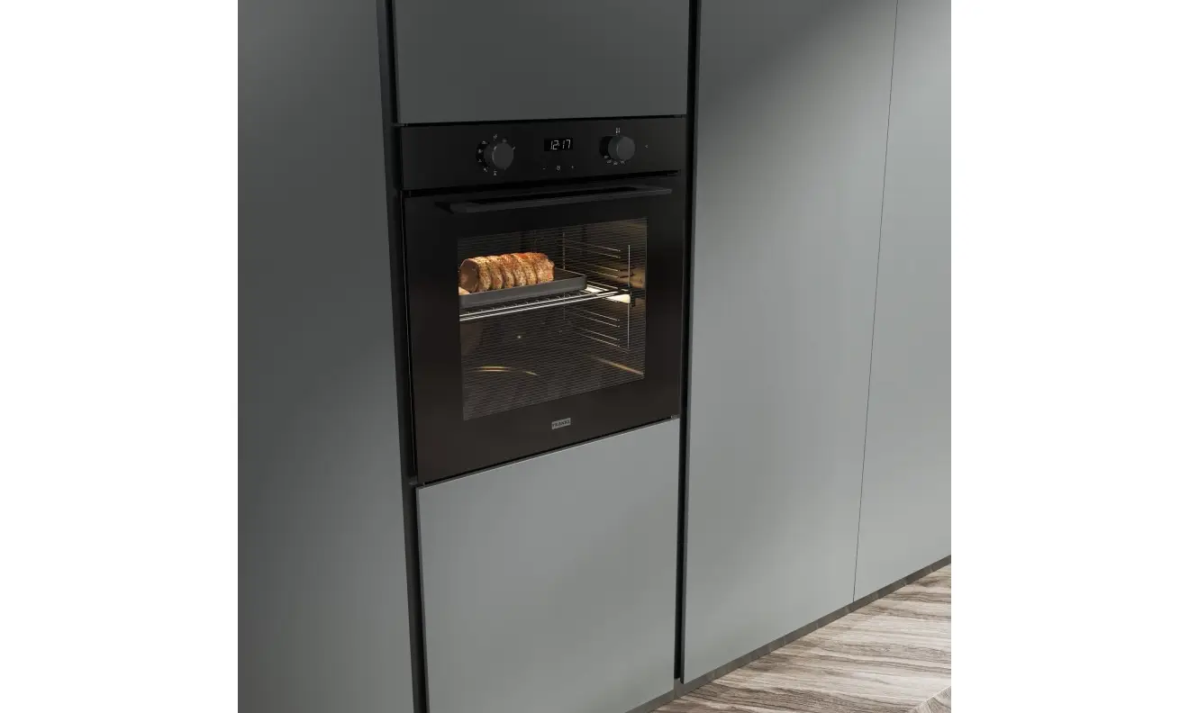 Urządzenie posiada 8 funkcji pieczenia, bardzo dużą pojemność - 71 litrów, co pozwoli na swobodne używanie większych naczyń, 5 poziomów pieczenia oraz funkcję termoobiegu z grzałką kołową, która umożliwia pieczenie nawet trzech potraw jednocześnie. Po intensywnym gotowaniu nie musisz martwić się nadmiernym sprzątaniem wnętrza piekarnika, ponieważ zawiera on funkcję czyszczenia parowego, która dodatkowo zapewni Ci znaczną oszczędność energii i ekologiczność. Piekarnik Franke Maris wyposażony jest również w cichy domyk typu Smooth2Close.