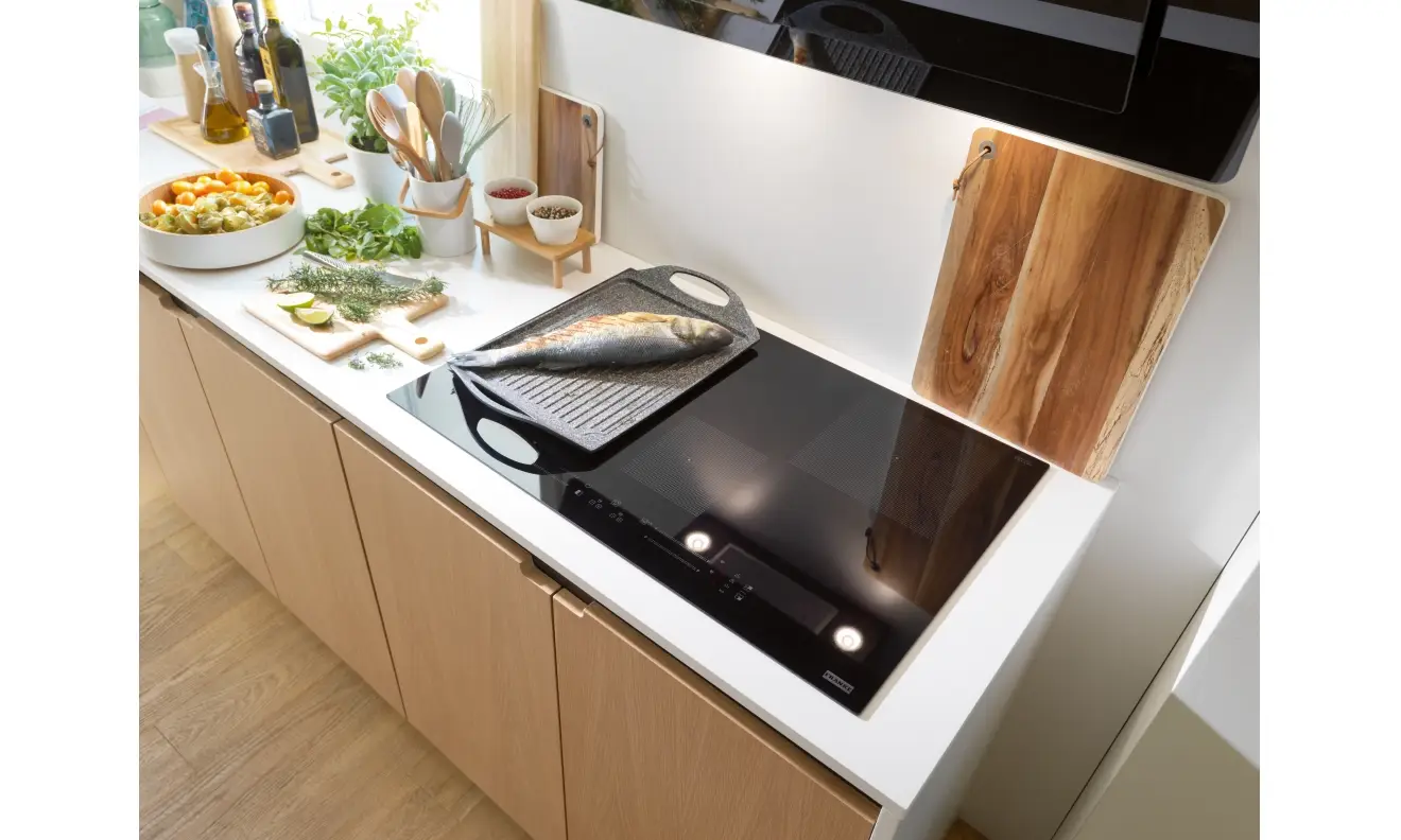 Płyta indukcyjna Maris FMA 804 I F jest stylowym urządzeniem, które pokochają miłośnicy gotowania. Duże łączone pole Flexi, idealne dla większych garnków i brytfann. Płyta ma aż 18 poziomów mocy oraz Booster i 4 funkcje specjalne (2 na pole) - roztapianie, utrzymywanie w cieple, gotowanie i wrzenie. Posiada również blokadę przed dziećmi i wskaźnik ciepła resztkowego. Sterowanie odbywa się Sliderem dla każdego pola osobno. Możliwy jest montaż na równi z blatem.