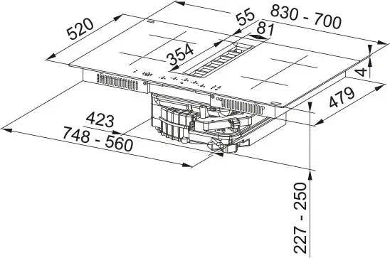 Płyta indukcyjna z okapem Franke Maris 2gether FMA 8372 4RC R HI to urządzenie typu „2 w 1”, idealne dla nowoczesnych kuchni, które łączą gotowanie i wentylację w jednym module. Zbudowana jest z czarnego szkła w wersji bezramkowej, co pozwala na elegancki montaż — zarówno wpuszczony w blat, jak i „na równi” z nim.