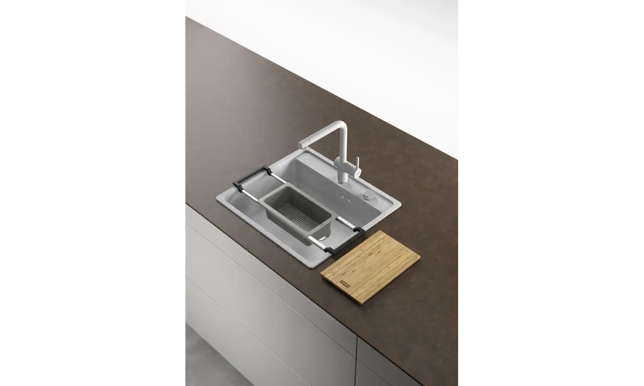- dużą wkładkę ociekową zabezpieczoną technologią Sanitized®, która ogranicza rozwój bakterii i mikroorganizmów. Tę wkładkę możesz wykorzystać jako durszlak, ociekacz do sztućców i przyborów kuchennych lub jako pojemnik na obierki