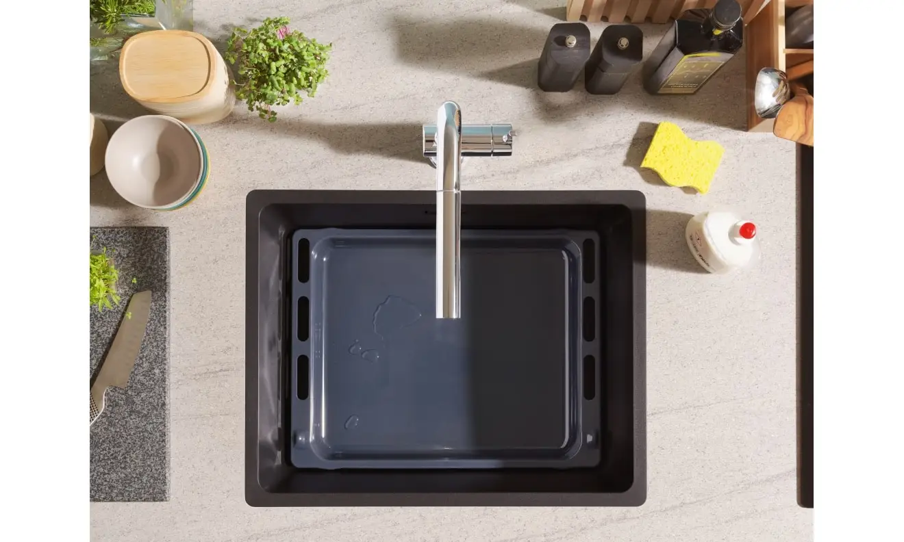 Zlewozmywak Maris posiada dwie możliwości montażu - podbudowany pod blatem lub na równi z blatem. Niezależnie na który sposób montażu się zdecydujesz - będzie prezentował się świetnie. Ten model zawiera w zestawie korek zatyczkowy Grey Line 3 1/2".