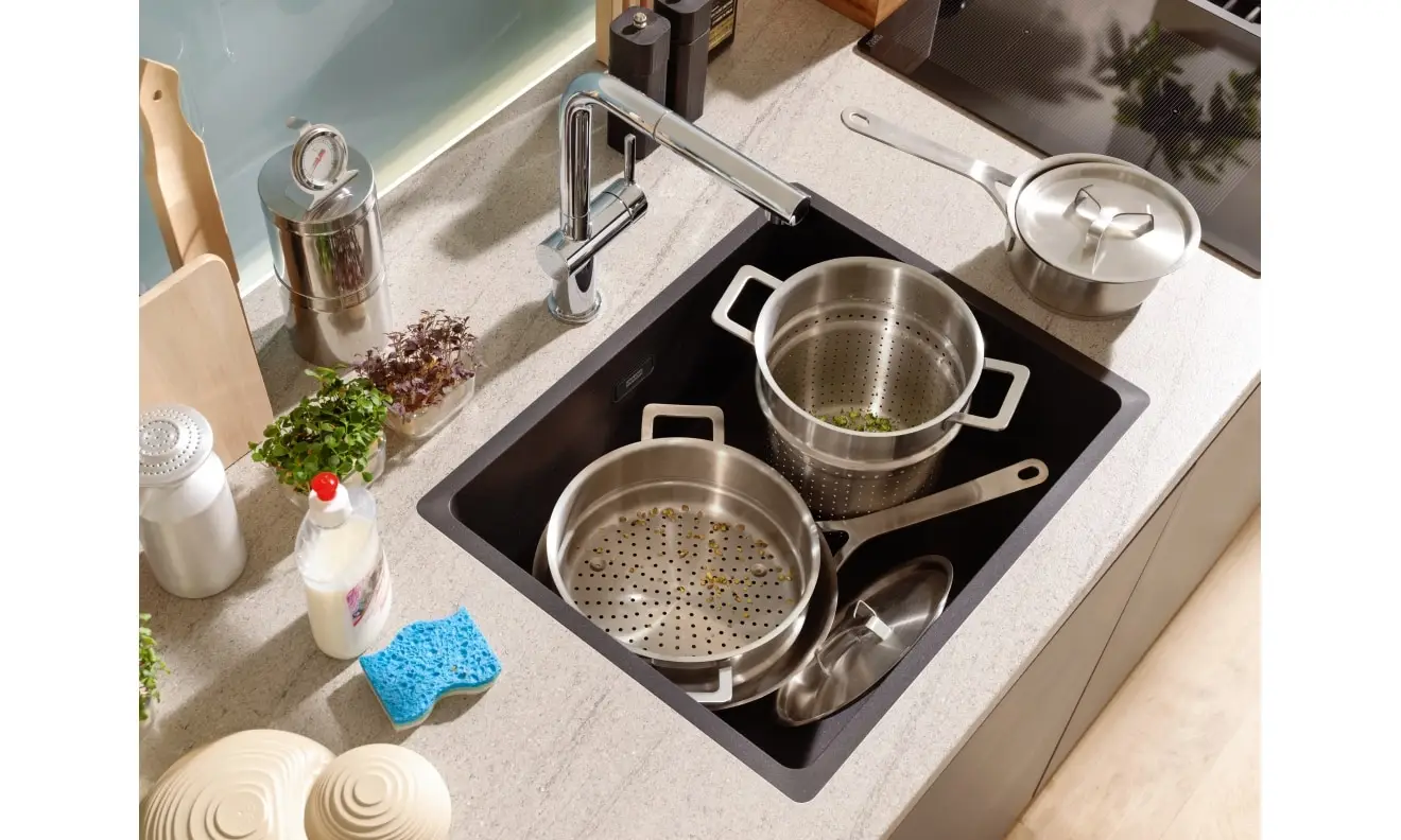 Zlewozmywak wyprodukowany jest z Fragranitu+, który składa się w 80% z naturalnego granitu. Dzięki zastosowaniu bardzo drobnych cząsteczek granitu, uzyskano zlewozmywak idealnie gładki i delikatny w dotyku. Wszystkie zlewozmywaki fragranitowe FRANKE, wyprodukowane są z wykorzystaniem technologii Sanitized®. Zawierają zatem szkło fosforanowe z dodatkiem srebra, ograniczającym rozwój bakterii do 99%. Co więcej, zlewozmywaki z Fragranitu+ są odporne na zarysowania, uderzenia i zaplamienia, a ich kolor nie zmienia się z upływem czasu. Są również odporne na krótkotrwałe działanie wysokiej temperatury (do 280°C przez 15 sek.).