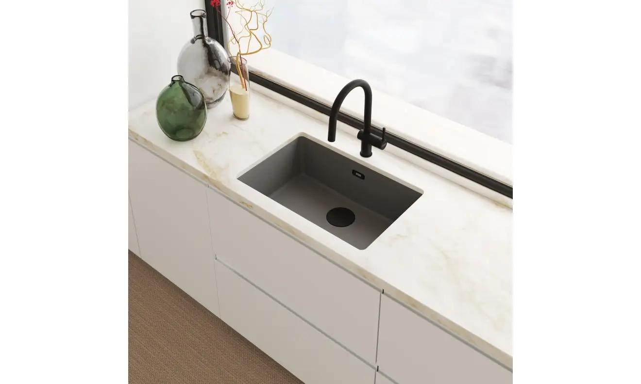 Zlewozmywak wyprodukowany jest z Fragranitu+, który składa się w 80% z naturalnego granitu. Dzięki zastosowaniu bardzo drobnych cząsteczek granitu, uzyskano zlewozmywak idealnie gładki i delikatny w dotyku. Wszystkie zlewozmywaki fragranitowe FRANKE, wyprodukowane są z wykorzystaniem technologii Sanitized®. Zawierają zatem szkło fosforanowe z dodatkiem srebra, ograniczającym rozwój bakterii do 99%. Co więcej, zlewozmywaki z Fragranitu+ są odporne na zarysowania, uderzenia i zaplamienia, a ich kolor nie zmienia się z upływem czasu. Są również odporne na krótkotrwałe działanie wysokiej temperatury (do 280°C przez 15 sek.).