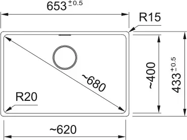 - Wycięcie: wymiar lewa - prawa 654.5 mm