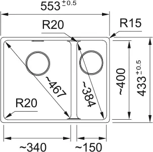 Zlewozmywak do podbudowy Maris MRG 160-34-15SBR