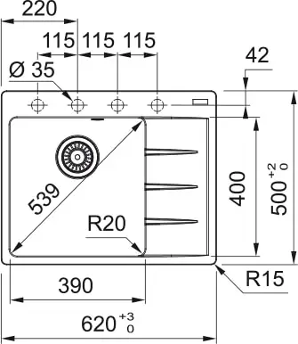 Zlewozmywak z ociekaczem po prawej stronie został wyposażony w system łatwego montażu Fast Fix. Ponadczasowa gama kolorystyczna podkreśli piękno każdej aranżacji. Wykonany z Fragranit +, który jest jednym z najtrwalszych materiałów na świecie, poddany obróbce ma subtelny połysk i jest naturalny w dotyku. Powierzchnia jest delikatnie teksturowana, ale nie porowata, co zapewnia wysoki standard higieny. Składający się w 80% z piasku kwarcowego i w 20% z bardzo twardej żywicy akrylowej, odporny Fragranit + od Franke zapewnia dożywotnie piękno.