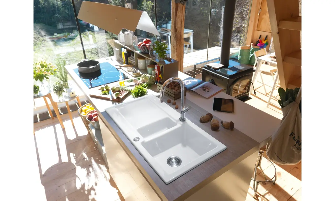 Fraceram wykonany jest w 100% z materiałów naturalnych. Idealnie gładka powierzchnia zlewozmywaka ceramicznego sprawia, że jest on higieniczny, odporny na przebarwienia i łatwy w utrzymaniu czystości.