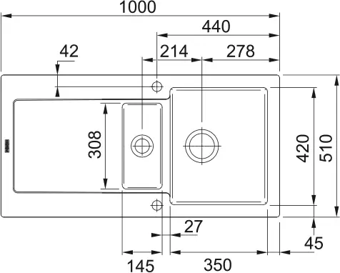 - Wycięcie: wymiar lewa - prawa 980 mm