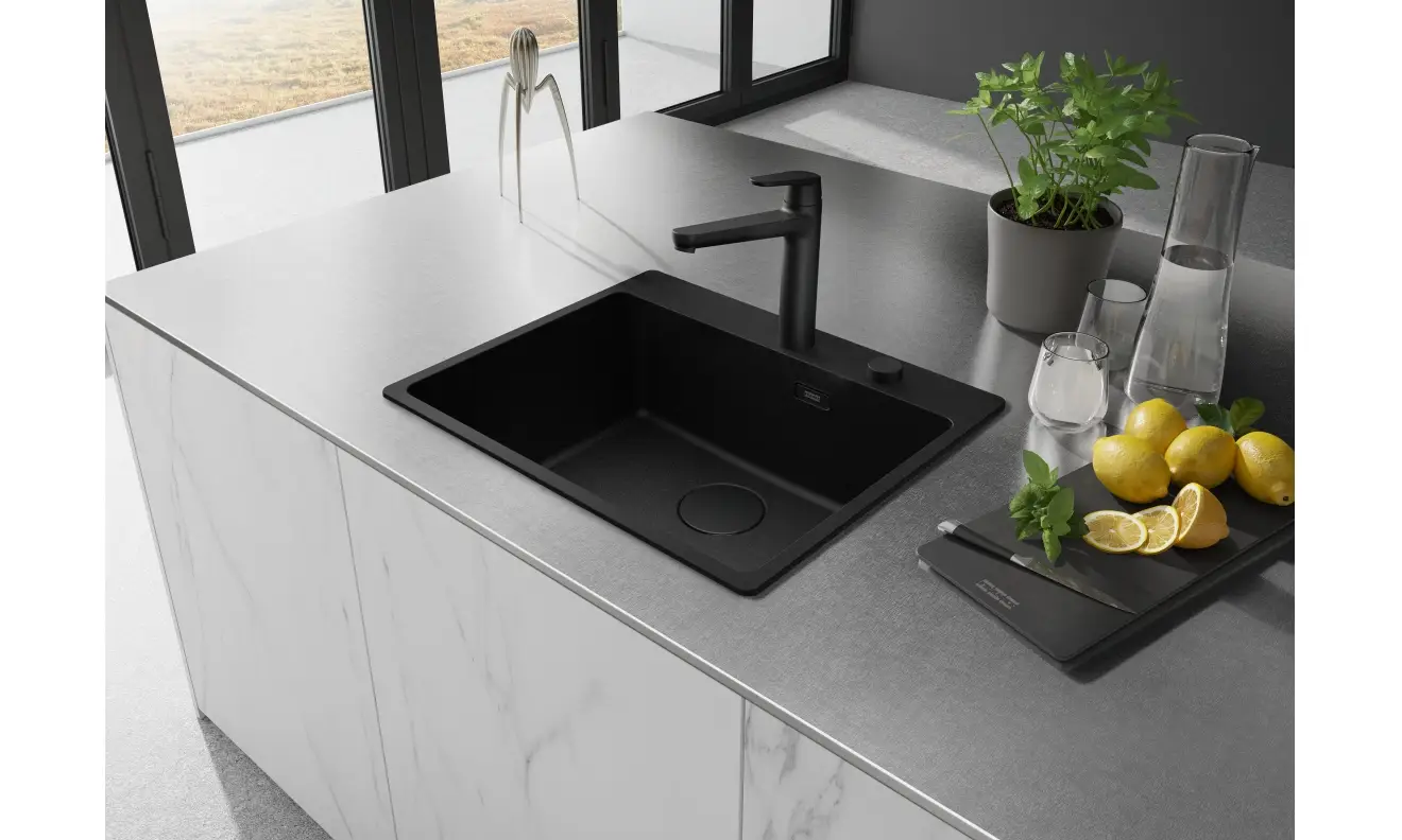 Zlewozmywak wbudowywany z linii Maris MRG 610-54 FTL, wykonany z trwałego Fragranit+ - dostępny w pięciu efektownych wersjach.