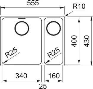 FRANKE - Zlewozmywak wbudowywany prawy Mythos MYX 160-34-16 Stal szlachetna szczotkowana