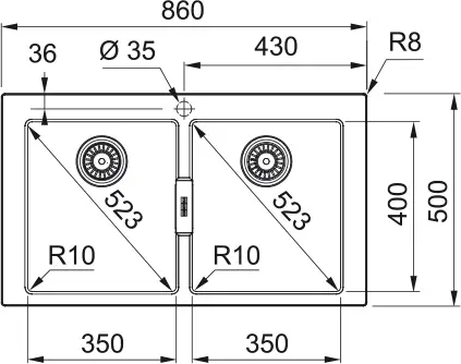 Zlewozmywak wbudowywany Sirius 2.0 S2D 620-35-35