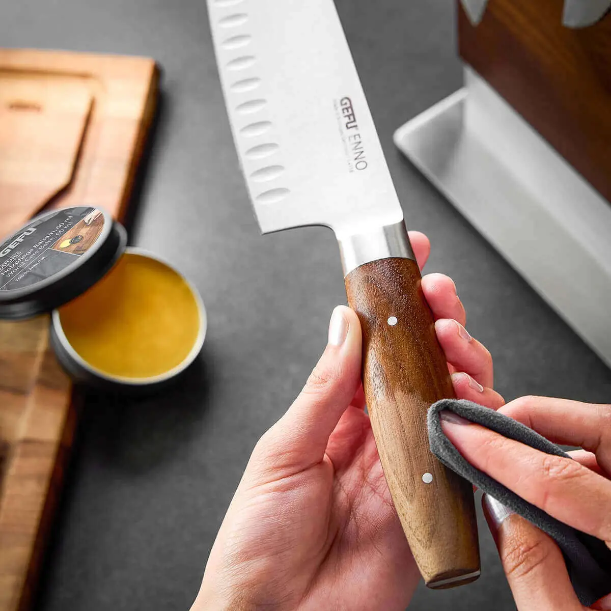 Przedłuż żywotność swoich ulubionych drewnianych przedmiotów dzięki naszemu specjalnemu balsamowi do pielęgnacji drewna. Naturalna formuła na bazie oleju lnianego i wosku pszczelego sprawia, że deski do krojenia, bloki rzeźnicze, uchwyty noży oraz drewniane akcesoria pozostają w doskonałym stanie na dłużej.