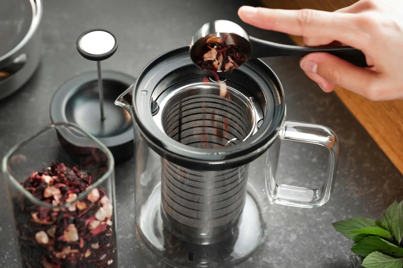 Prezentowany czajnik o pojemności 800 ml i wymiarach 16,5 x 11 x 15 cm (dł. x szer. x wys.) to połączenie elegancji i nowoczesnej technologii, które zadowoli każdego miłośnika herbaty. Filtr i unikalna funkcja Brew-Stop sprawiają, że przygotowanie herbaty staje się prawdziwą przyjemnością. Czajnik pozwala na precyzyjne zatrzymanie procesu parzenia i uzyskanie herbaty o idealnej intensywności. Jest przy tym łatwy w użytkowaniu - po zakończeniu parzenia wystarczy wcisnąć tłok, by zatrzymać parzenie i pozbyć się liści herbaty w bezpieczny sposób. Dołączona pokrywka zabezpiecza przed utratą temperatury i aromatu, zapewniając idealną temperaturę herbaty. Czajnik nadaje się do mycia w zmywarce.