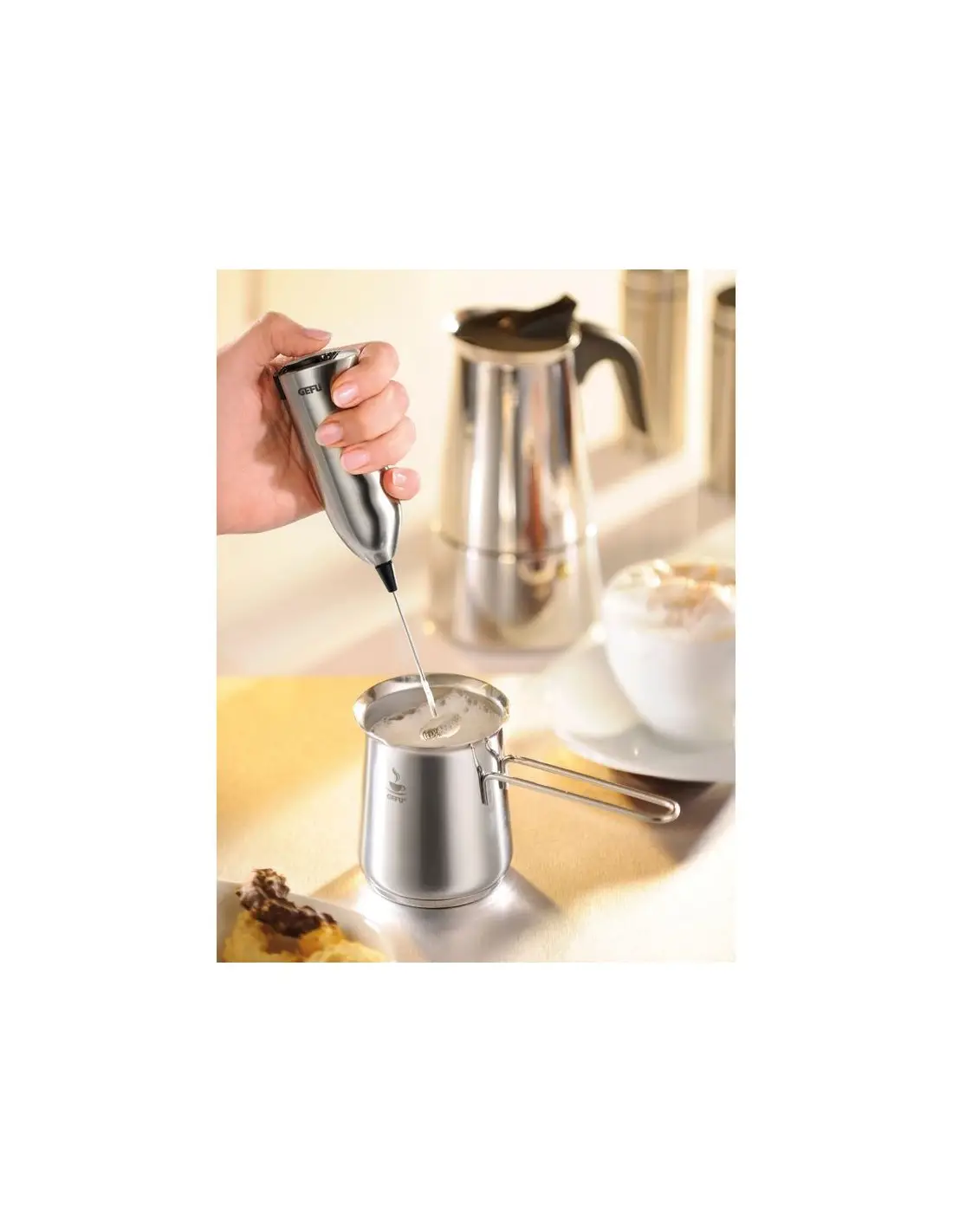 Dzbanek CLAUDIO z wysokiej jakości stali nierdzewnej to świetne naczynie do uzyskania puszystej pianki do aromatycznej Cappuccino, café latte czy też gorącej czekolady. Podwójne dno zapewnia optymalną temperaturę, a specjalny dzióbek ułatwia rozprowadzanie kremowej pianki w kubku. Jego dużym atutem jest pojemność- aż 300 ml. Produkt można myć w zmywarce.