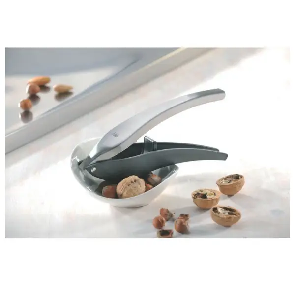 Ciekawie zaprojektowany i wygodny w użyciu. Zamykająca się komora zgniotu zapobiega rozsypywaniu się łupin.