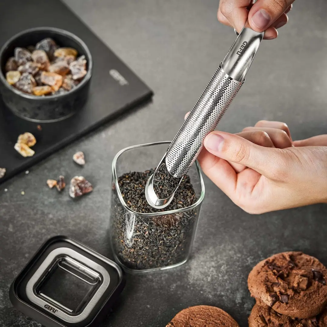 Ten smukły filtr do herbaty sprawia, że parzenie ulubionej herbaty staje się czystą przyjemnością. Dzięki wygodnemu, przesuwanemu sitku, listki herbaty można łatwo wsypać do środka, a wyprofilowany koniec zapobiega zsuwaniu się zaparzacza do filiżanki – zawsze pozostaje na swoim miejscu!
