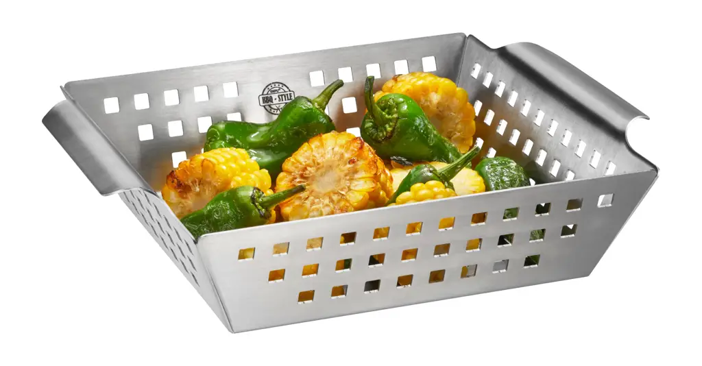 Prezentowana mała głęboka taca grillowa o wymiarach 25 x 21,5 x 5 cm (dł. x szer. x wys.) wykonana została z odpornej na korozję stali nierdzewnej. Doskonale nadaje się do zdrowego przygotowywania trudnych do ułożenia na ruszcie produktów m.in. delikatnych ryb czy kawałków różnych warzyw. Skutecznie zastąpi w tym jednorazowe tacki aluminiowe, które szkodzą środowisku. Taca została przy tym tak zaprojektowana by była jak najbardziej praktyczna. Jej perforowana powierzchnia pozwala na idealną cyrkulację powietrza, gwarantując tym samym równomierne nagrzewanie i gotowanie. Taca posiada również dwa wygodne uchwyty umożliwiające jej łatwe przenoszenie. Dodatkową zaletą produktu jest łatwość w jego czyszczeniu - nadaje się on zarówno do mycia ręcznego jak i do mycia z pomocą zmywarki.