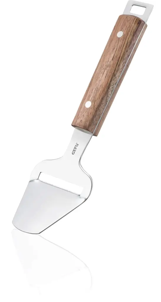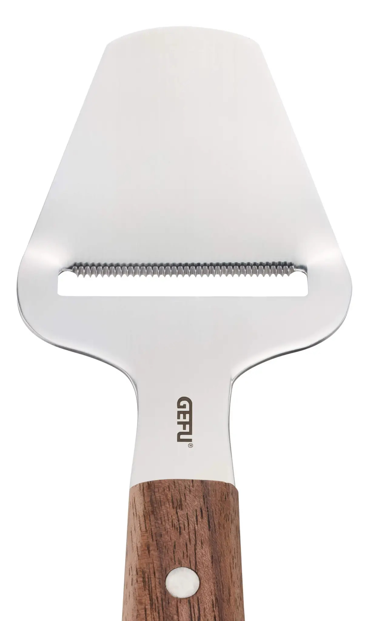 Rękojeść z drewna orzechowego zapewnia komfortowy i pewny chwyt, a zintegrowana pętla umożliwia zawieszenie krajalnicy w kuchni. Ząbkowane ostrze sprawia, że plasterki są równe, a ser się nie kruszy.