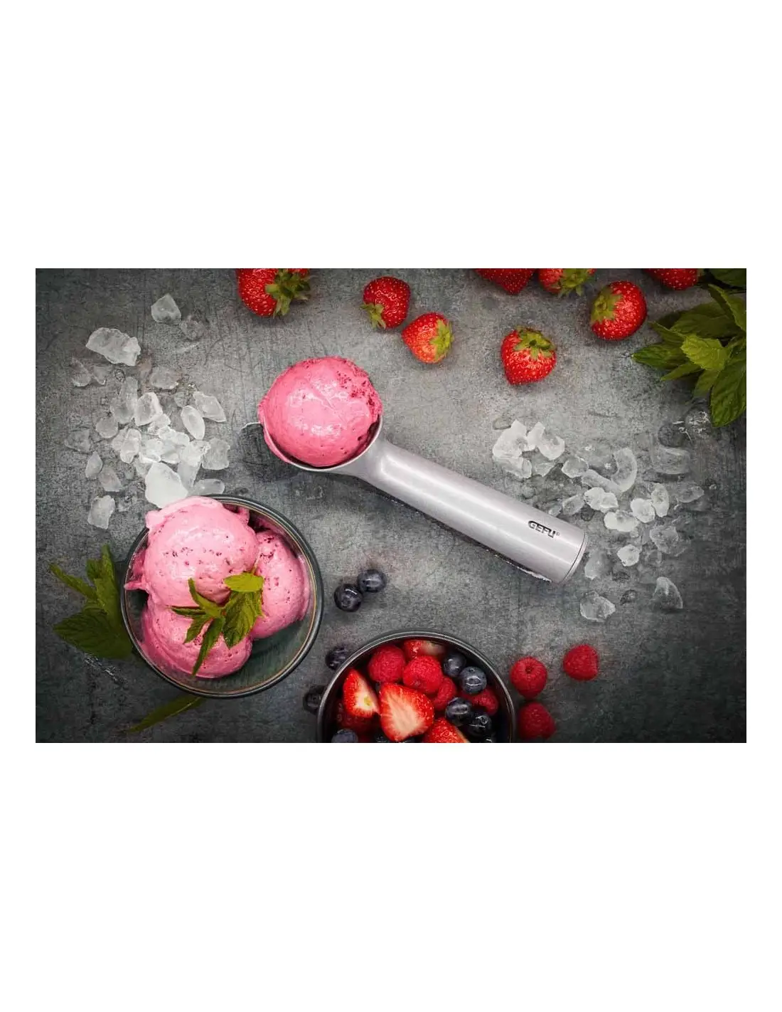 Poręczna łyżka do lodów PALLINA umożliwi zrobienie idealnej gałki z lodów i sorbetów owocowych. Gałkownica pokryta jest aluminium, dzięki czemu pochłania szybciej ciepło, niż zimno, więc poradzi sobie nawet z najbardziej zamarzniętymi lodami. Łyżka posiada szeroki, ergonomiczny uchwyt.