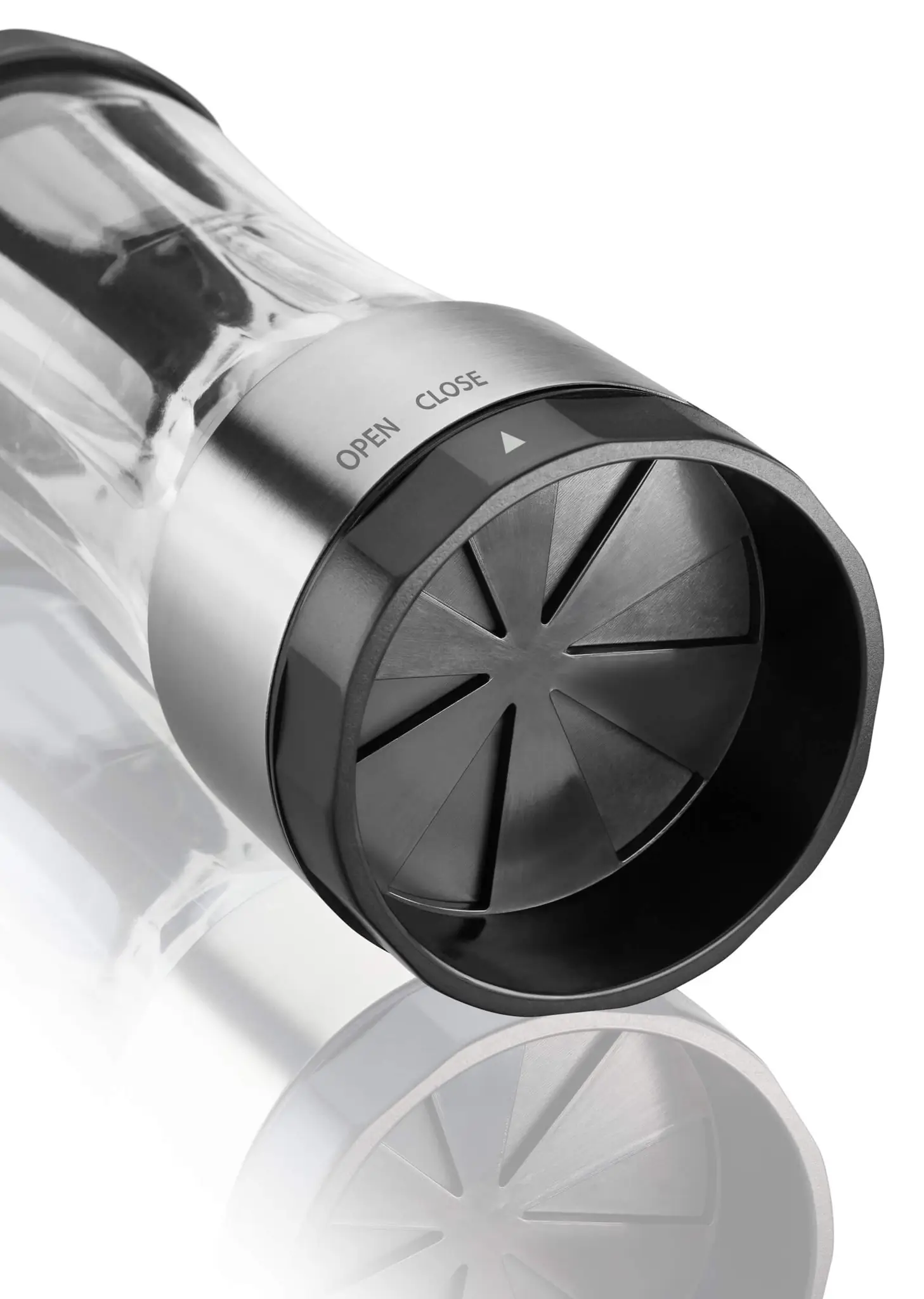 Urządzenie wyposażono w obrotowy pierścień ze stali nierdzewnej oraz blokadę chroniącą zawartość przed wilgocią. Przezroczysty pojemnik pozwala na wygodne kontrolowanie poziomu cukru. DISPENSO to funkcjonalne i stylowe akcesorium kuchenne dla każdego pasjonata wypieków.