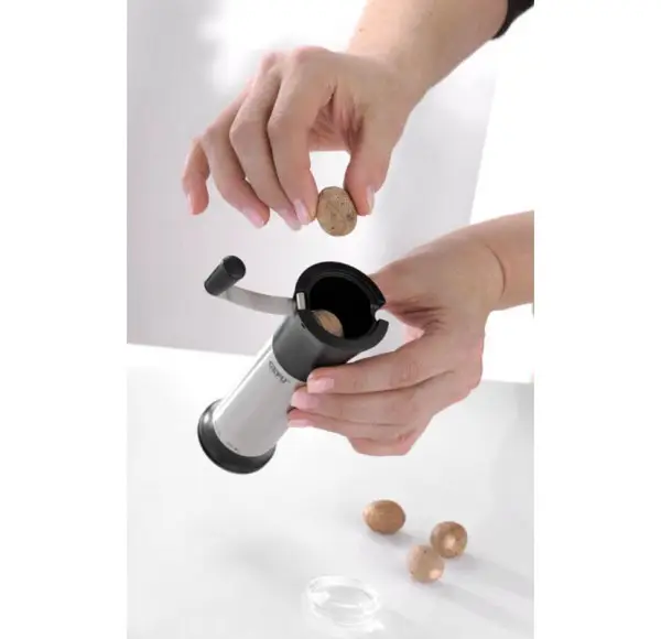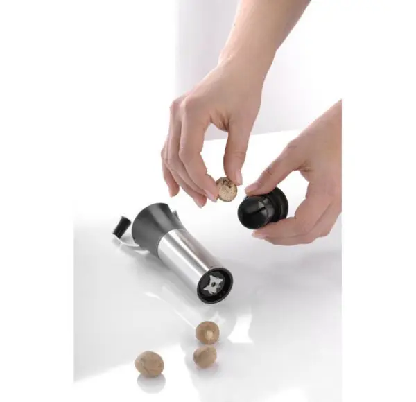 Młynek przeznaczony jest przede wszystkim do mielenia gałki muszkatołowej; doskonale radzi sobie też z orzechami lub migdałami. Korpus i mechanizm został wykonany z najwyższej jakości stali nierdzewnej; głowica mieląca wycięta została metodą laserową. Posiada on dwa zasobniki z tworzywa sztucznego: zasobnik na gałkę przed zmieleniem, mieszczący 4 sztuki oraz zasobnika, stanowiącego jednocześnie wieczko mechanizmu, mieszczącego 1 gram zmielonej gałki. Wyposażony jest w składaną korbkę z plastikowym uchwytem.