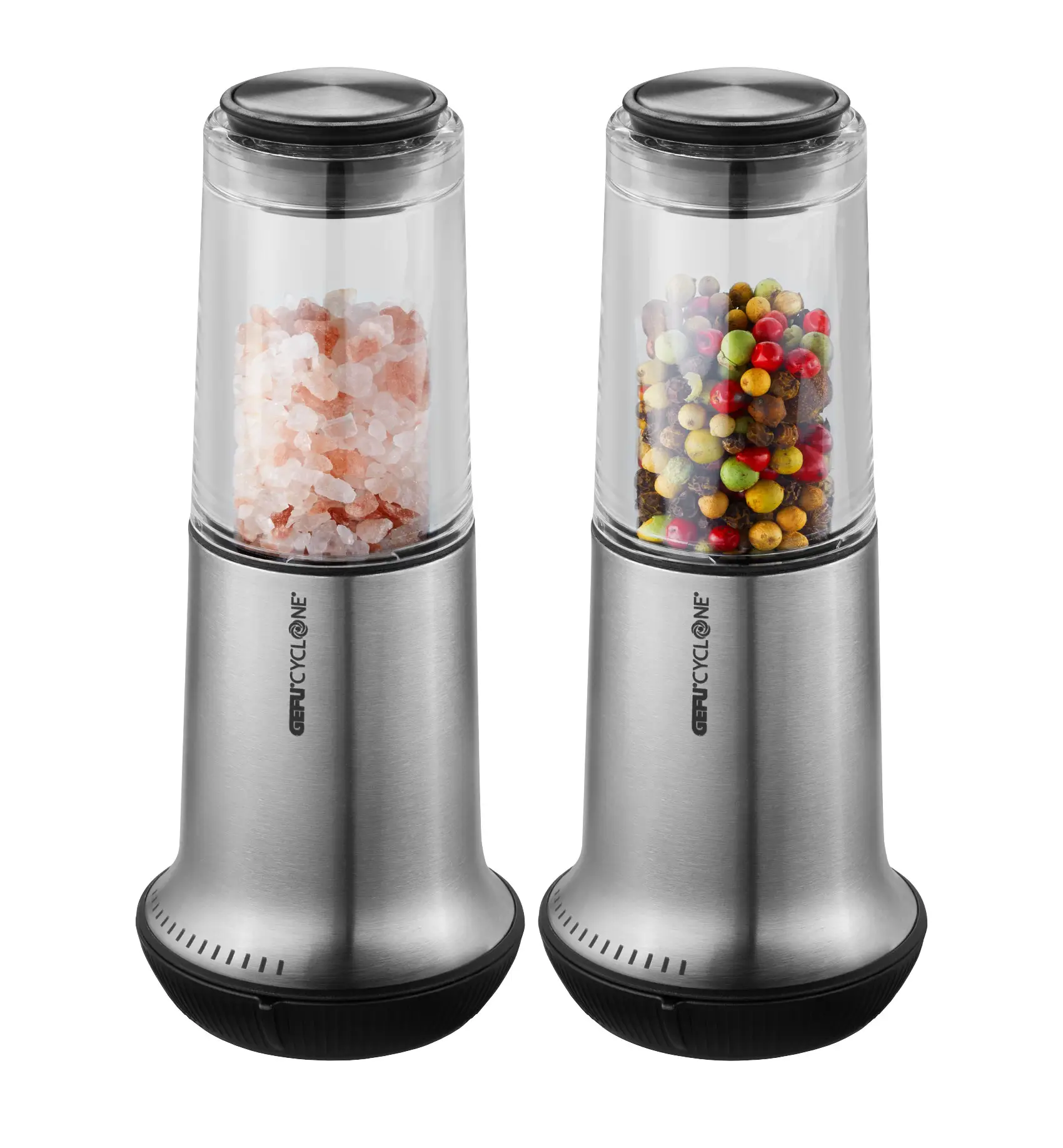 Prezentowany srebrny młynek do soli i pieprzu w rozmiarze M (6,2 x 15 cm) łączy w sobie nowoczesny design z innowacyjną technologią, zapewniającą precyzyjne rozdrabnianie i maksymalną wydajność, które pozwalają na eksperymentowanie z intensywnością aromatów. Będzie więc zarówno funkcjonalnym, jak i wizualnym dopełnieniem kuchni i jadalni, sprawnie spełniając swoją funkcję i elegancko prezentując się na blacie. Stożkowy młynek CYCLONE o ceramicznych ostrzach umożliwia otrzymywanie przyprawy o różnej grubości - od drobnego proszku po bardzo grube fragmenty, dzięki czemu łatwo można go dostosować do potrzeb danego dania lub indywidualnych preferencji. Dodatkowo młynek jest łatwy w napełnianiu - przezroczyste ścianki ułatwią przy tym wygodną kontrolę ilości przyprawy wewnątrz. Pojemnik wyposażono w szczelną pokrywkę, która chroni zawartość przed wilgocią, zatrzymując jednocześnie jej aromat. Młynek należy czyścić wyłącznie ręcznie.