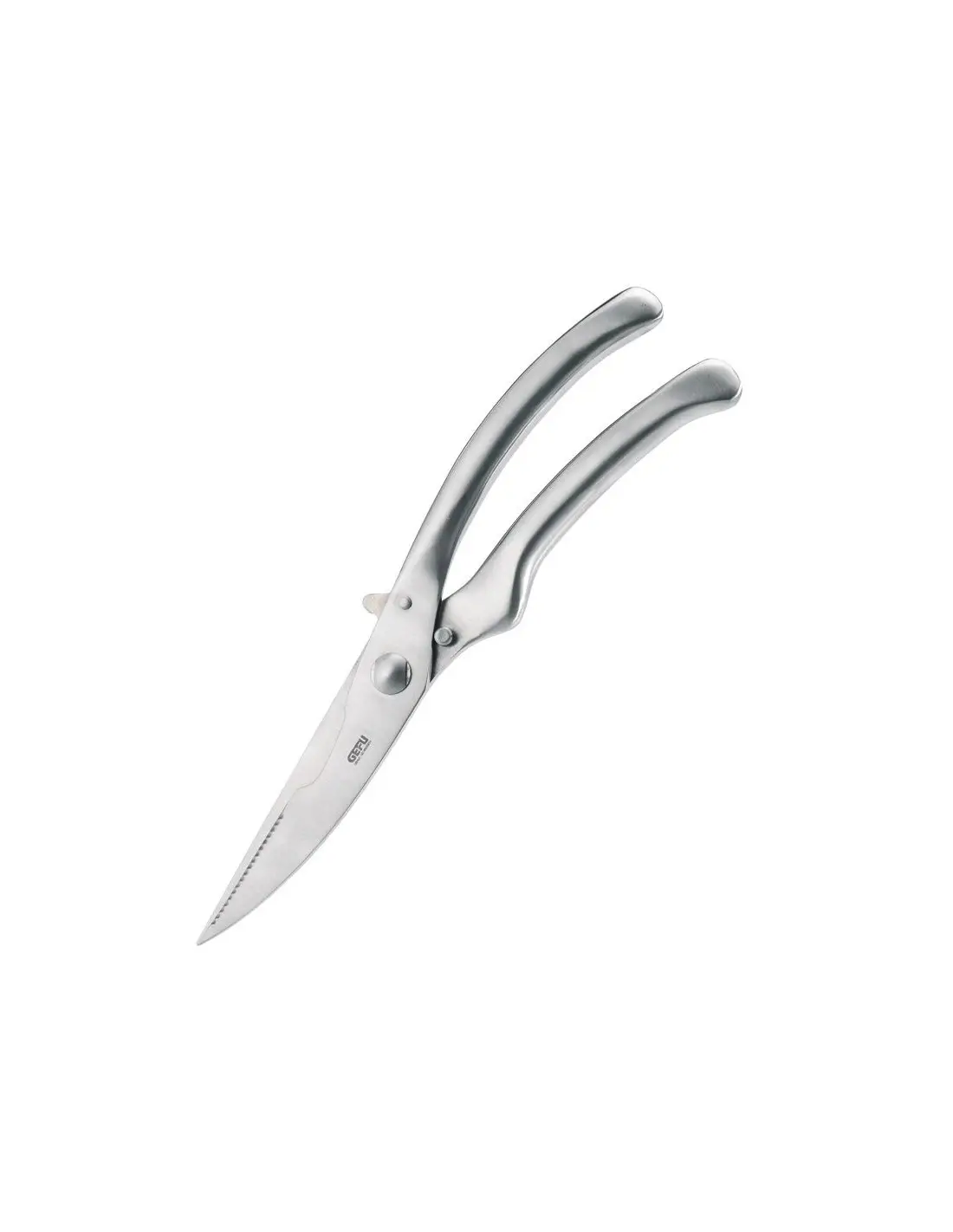 Nożyce do drobiu marki GEFU łączą w sobie funkcjonalność i designerski wygląd. Posiadają ergonomiczny uchwyt oraz ząbkowane ostrza, które z łatwością poradzą sobie z każdym rodzajem drobiu. Eleganckie nożyce wykonane ze stali nierdzewnej pozwolą w prosty i higieniczny sposób przygotować i podać dania z kurczaka czy indyka. Produkt można myć w zmywarce.