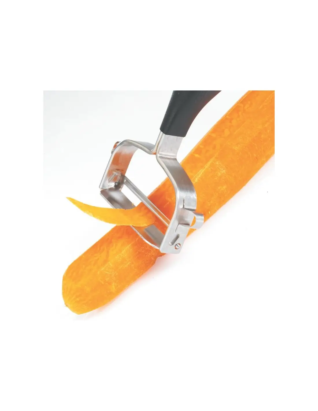 Obieraczka UNIVERSALE wykonana jest z najwyższej jakości stali nierdzewnej. Powstała z myślą o ludziach zarówno prawo, jak i leworęcznych. Posiada ergonomiczny uchwyt. Z jej pomocą sprawnie i bez problemów obierzesz warzywa i owoce. Produkt można myć w zmywarce, objęty jest 5-letnią gwarancją.
