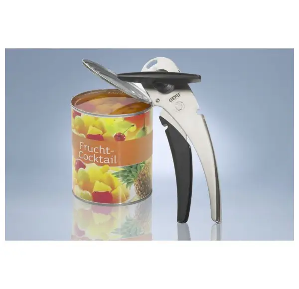 Otwieracz doskonale poradzi sobie z każdym rozmiarem puszki, pozostawiając jej krawędź nieposzarpaną. Wykonany został ze stali nierdzewnej z elementami z tworzywa sztucznego. Posiada mechanizm obrotowy otwierania, poruszany wygodnym w trzymaniu pokrętłem. Produkt nadaje się do mycia w zmywarce.