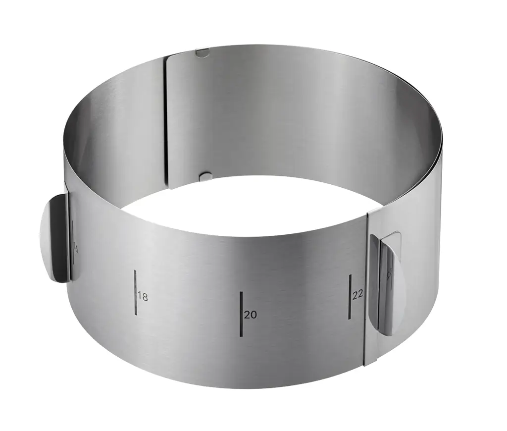 Prezentowany pierścień do ciast o wysokości 10 cm dzięki regulowanej średnicy o zakresie 16-32 cm będzie bardzo uniwersalny. Doskonale nada się on nie tylko do przygotowywania przepysznych ciast i tortów, ale i do robienia zapiekanek mięsnych lub warzywnych. Na zewnętrznej ściance umieszczono czytelną skalę do 2 cm oraz uchwyty pozwalające na płynną regulację rozmiaru oraz utrzymanie wybranej średnicy. Pierścień wykonany został z wysokiej jakości stali nierdzewnej. jego dodatkową zaletą jest łatwość w czyszczeniu - można go całkowicie rozłożyć, co pozwala na dokładne mycie. Ponadto nadaje się do mycia w zmywarce.