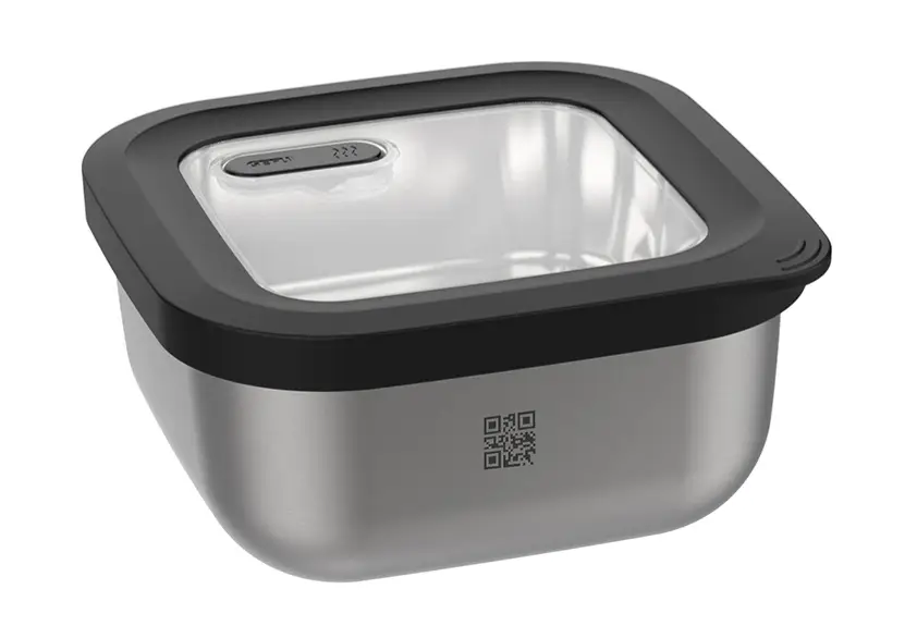 Pojemniki z kolekcji PROVIDO posiadają na ściankach kody QR które można połączyć z aplikacją “Inwentaryzacja i menedżer listy zakupów” aby łatwo i wygodnie kontrolować świeżość przechowywanej w nich żywności.