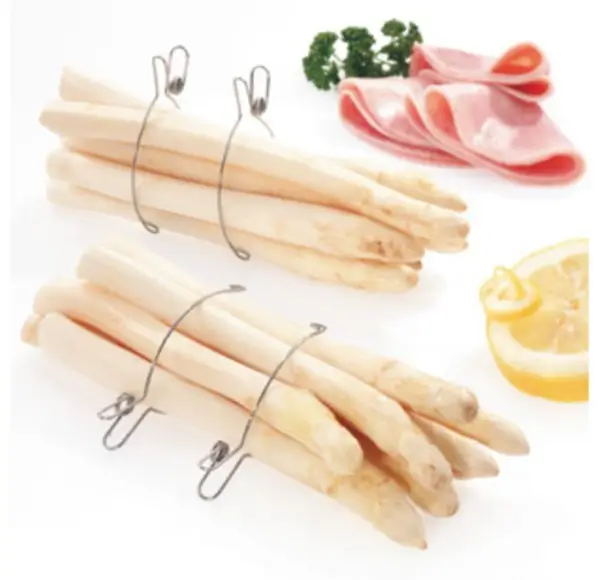 Spinki wykonane zostały z najwyższej jakości stali nierdzewnej. Są niezwykle przydatne w kuchni. Dają możliwość łatwego wyjmowania ugotowanych szparagów z garnka; zabezpieczają je przed połamaniem. Produkt nadaje się do mycia w zmywarce.