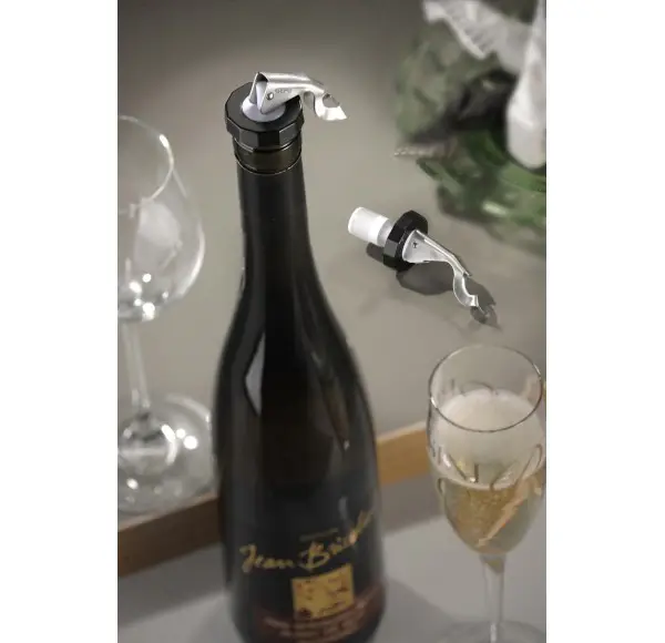 Stopery do butelek z otwieraczem służą do zamykania wszelkich butelek z szyjką o średnicy 16,5 - 19,5 mm, a także otwierania wszelkich butelek kapslowanych. Wykonane zostały z tworzywa sztucznego; posiadają dźwignię ze stali nierdzewnej zintegrowaną z otwieraczem. Nadają się do mycia w zmywarce.