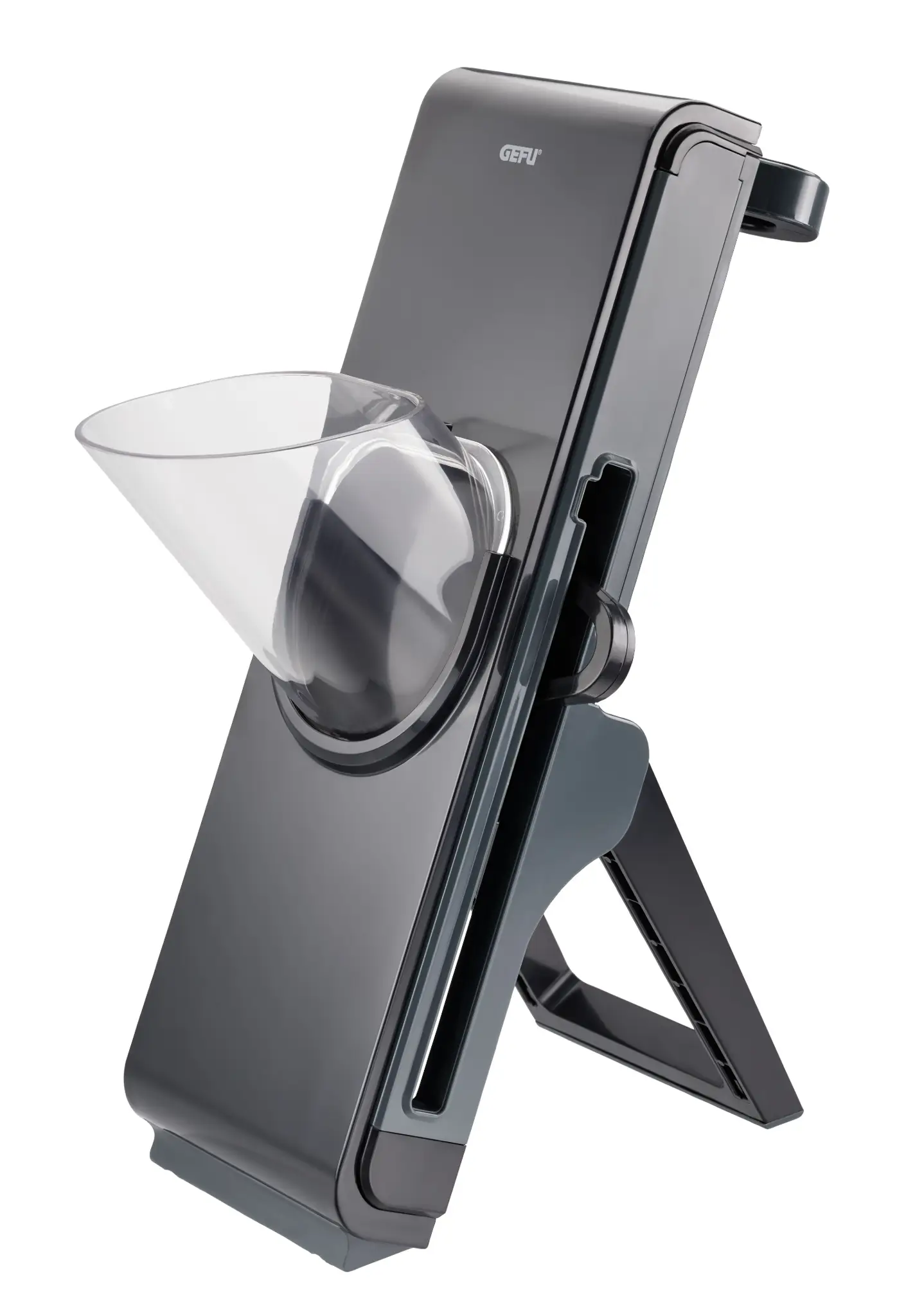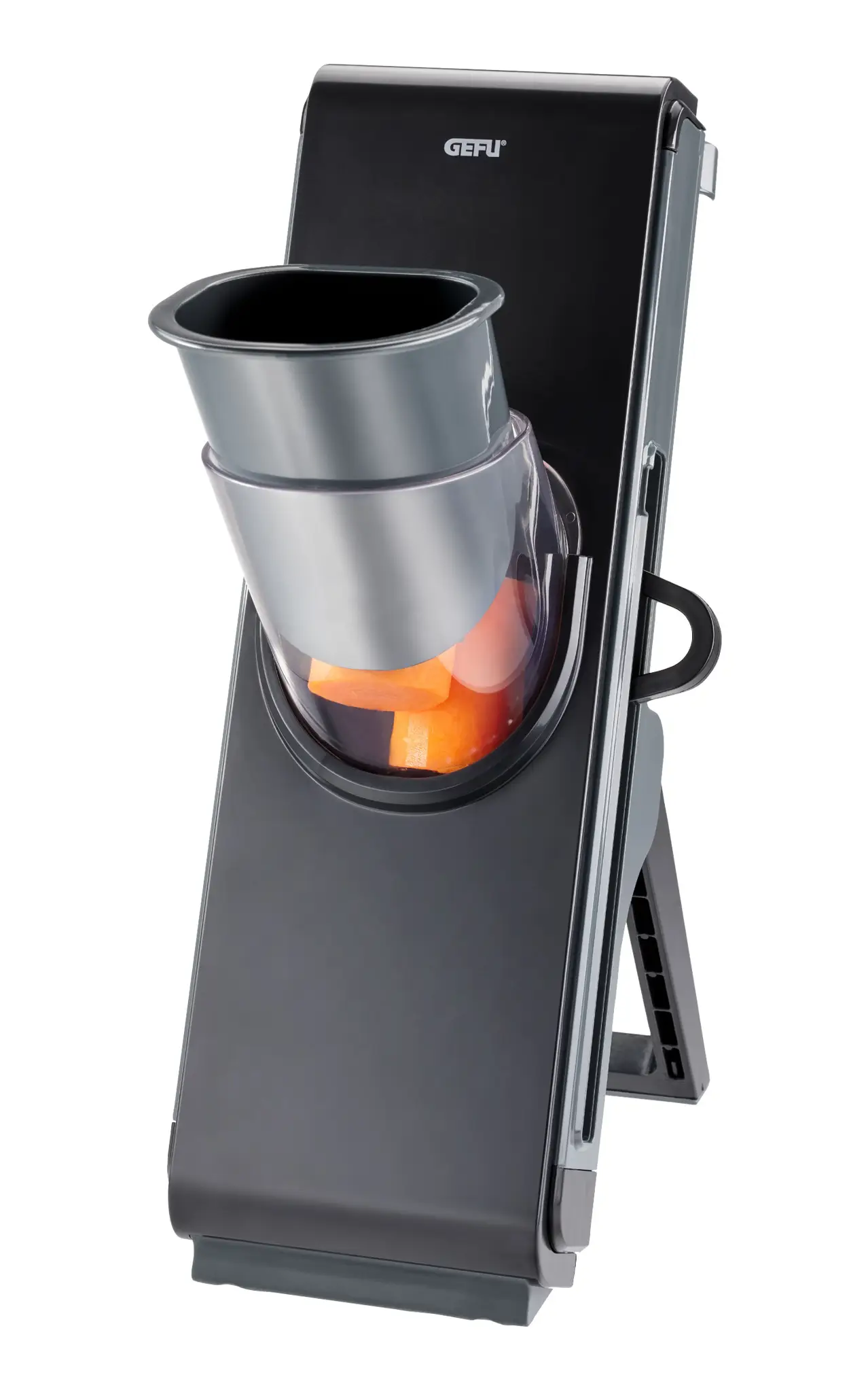 Prezentowana wykonana z tworzywa sztucznego i wysokiej jakości stali nierdzewnej szatkownica STANDO o wymiarach 22 x 9,8 x 26,6 cm pozwoli na łatwe przygotowywanie pysznych sałatek i obrabianie warzyw do różnych posiłków, umożliwiając krojenie ich na plastry (2 i 4 mm) lub paski (3,5 i 7 mm). Rozkładana, antypoślizgowa podstawa, ergonomiczny uchwyt oraz pojemnik zbiorczy zapewnią wygodę używania, dając odpowiednią stabilność. Unikalną cechą produktu są ruchome wymienne wkłady tnące - ostrza przesuwają się po warzywach lub owocach, a nie warzywa/owoce po ostrzach. Sprawia to, że krojenie jest sprawne i szybkie. Osłona na palce zapewnia z kolei bezpieczeństwo, chroniąc przed zranieniami podczas pracy. Dodatkowymi zaletami produktu są łatwość przechowywania - możliwość demontażu w celu oszczędzenia miejsca - oraz łatwość w utrzymaniu w czystości - wszystkie elementy oprócz korpusu można myć w zmywarce.