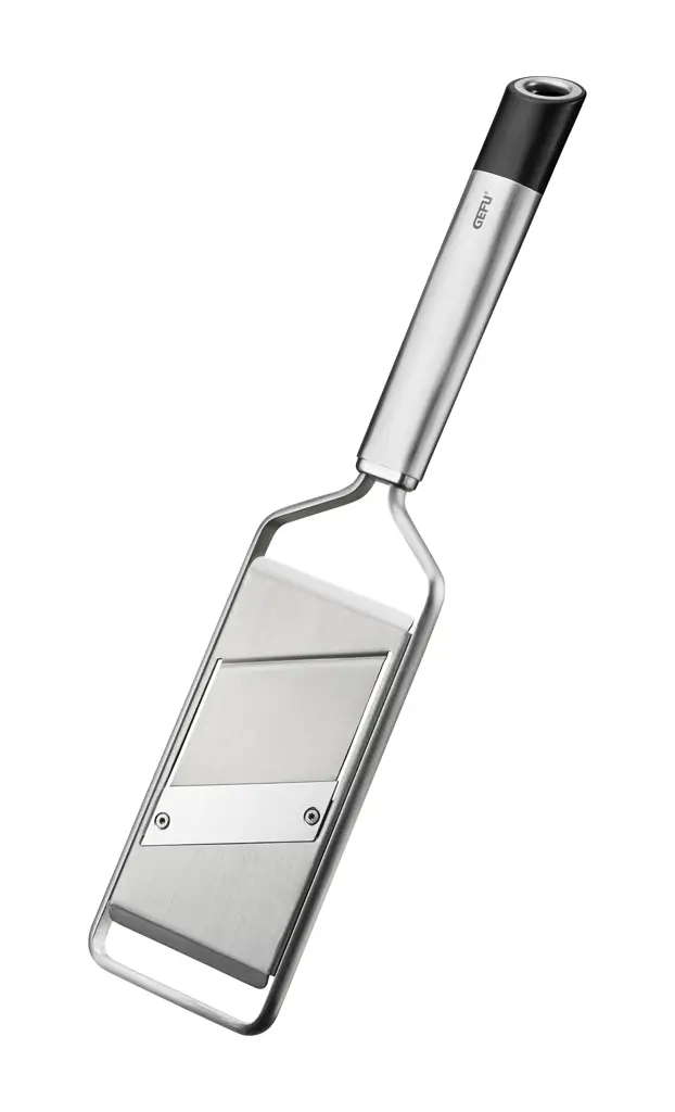 Prezentowana szatkownica o wymiarach 35,1 x 8,4 x 1,9 cm (dł. x szer. x wys.) wykonana została z wysokiej jakości stali nierdzewnej i tworzywa sztucznego. Dzięki swoim kompaktowym wymiarom, regulacji grubości oraz bardzo ostrym, podwójnym ostrzom w szybki i łatwy sposób pokroi składniki na bardzo drobne kawałki, świetnie sprawdzając się przy krojeniu trufli, parmezanu, czekolady czy innych twardych składników bezpośrednio przy stole. Ergonomicznie ukształtowany uchwyt zapewni przy tym odpowiednią wygodę podczas używania. Dodatkowo specjalne oczko do zawieszania* ułatwi przechowywanie produktu. Z kolei możliwość mycia w zmywarce ułatwi czyszczenie.