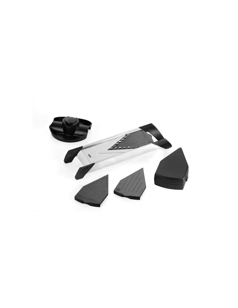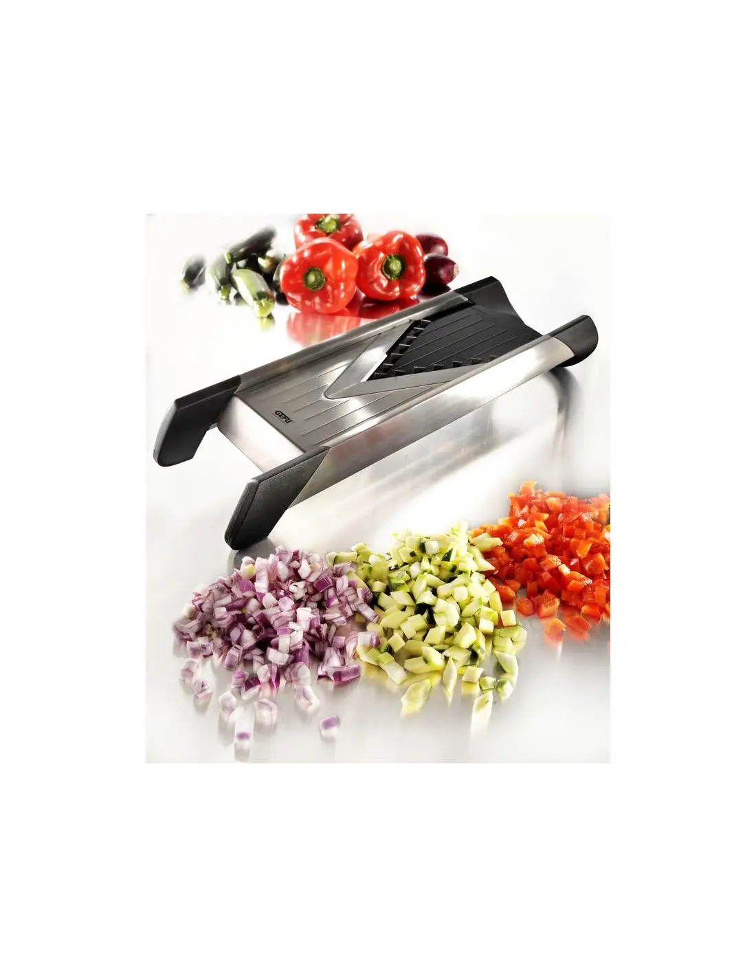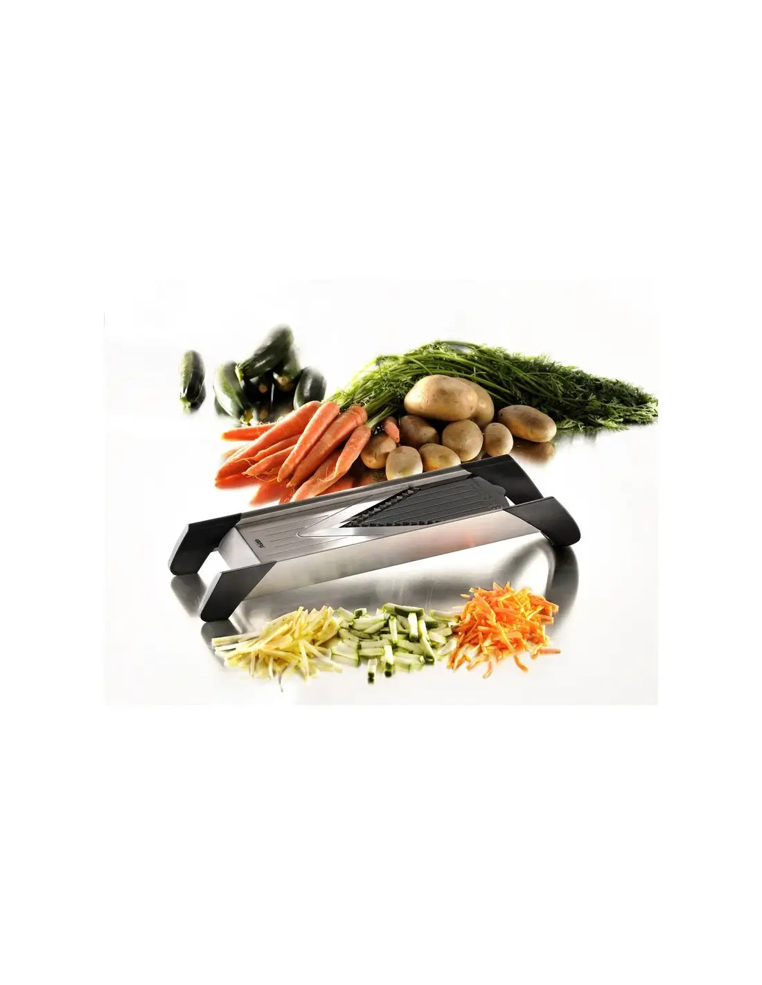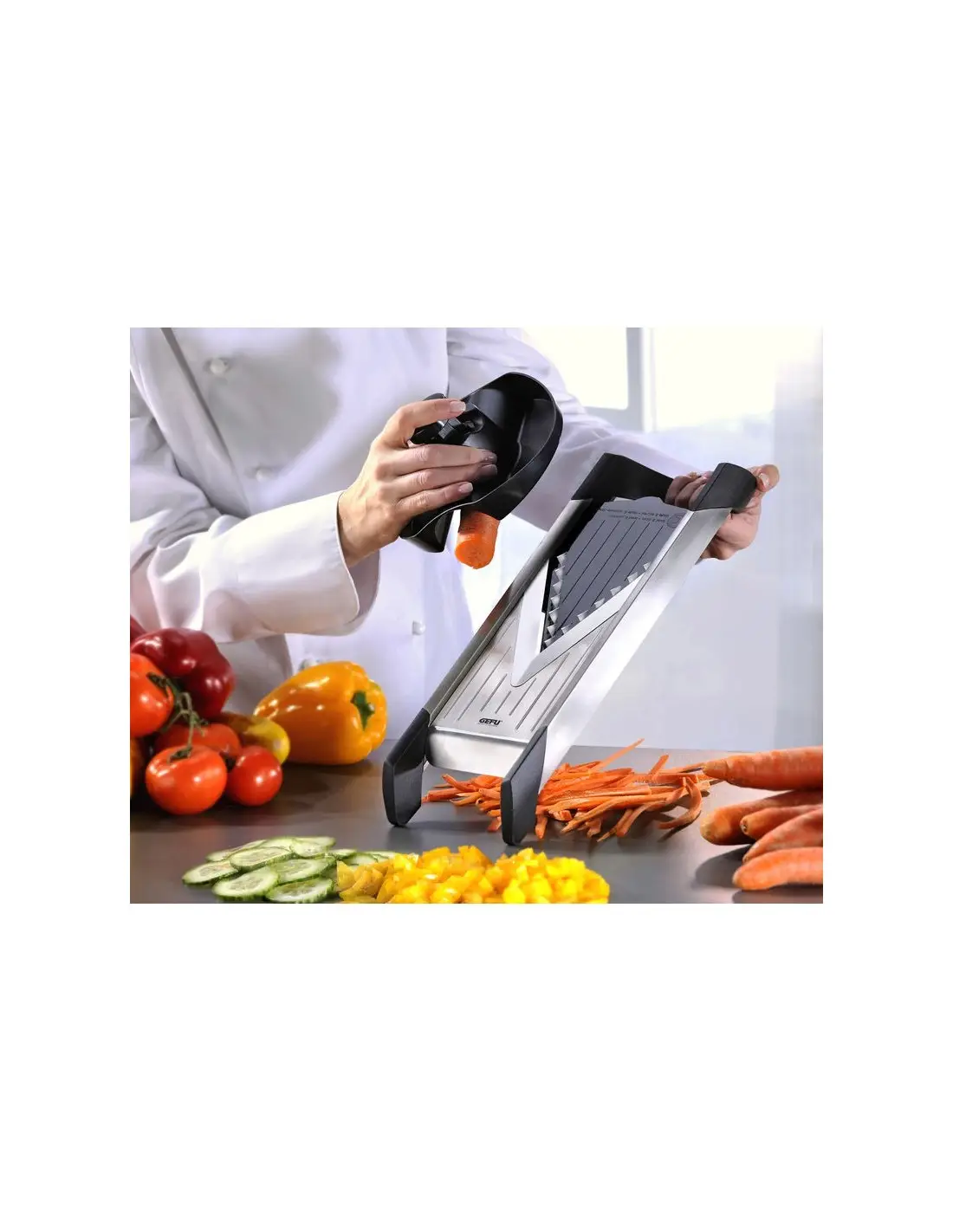 Wielofunkcyjna szatkownica VIOLINA od marki GEFU, pozwala cieszyć się na nowo zdrowymi potrawami z owoców i warzyw. Posiada trzy wymienne wkładki do cięcia produktów w paski, kostkę lub plastry. W zestawie znajduje się uchwyt na produkty, który uchroni palce przed zacięciami. Ergonomiczny uchwyt i antypoślizgowa podstawa szatkownicy zapewniają wygodę pracy. Produkt posiada 5-letnią gwarancję, można go myć w zmywarce.