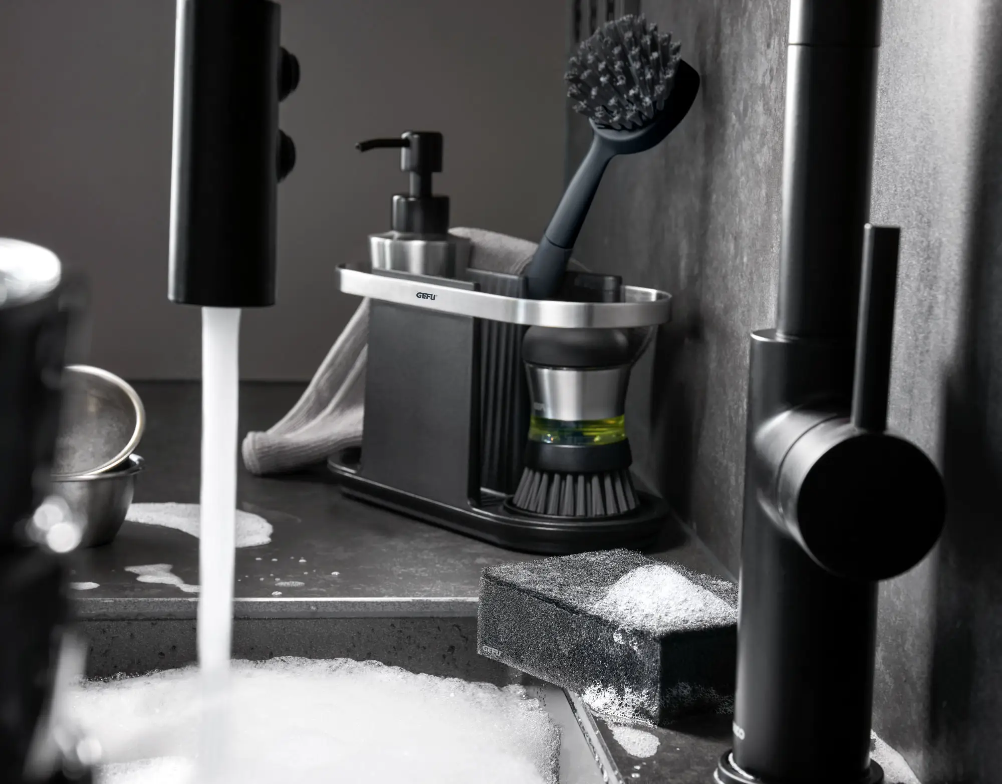 Niemiecka marka GEFU oferuje innowacyjne, wysokiej jakości produkty zarówno do wstępnego przygotowywania żywności i jej przechowywania, jak i do lepszej organizacji i zachowania porządku. W kolekcji SWIFT znaleźć można dozownik, gąbki, ściereczkę i szczotki do wygodnego mycia naczyń i powierzchni mebli.