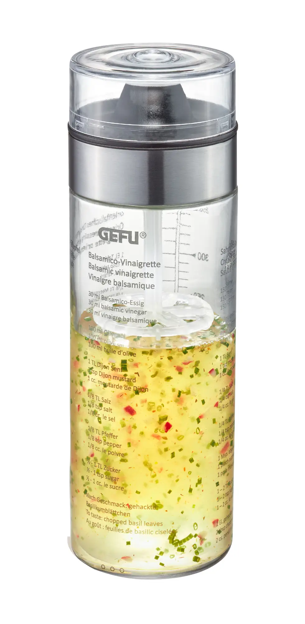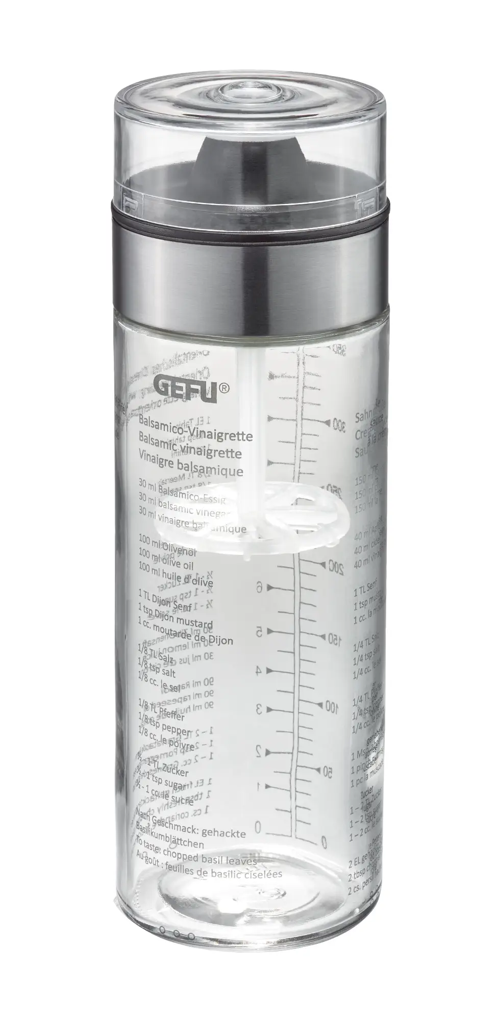 Shaker do dressingów to niezastąpiona pomoc w przygotowywaniu domowych sosów do sałatek. Jego zintegrowana z pokrywką ubijaczka sprawia, że dressingi są jednolite i równomiernie wymieszane.