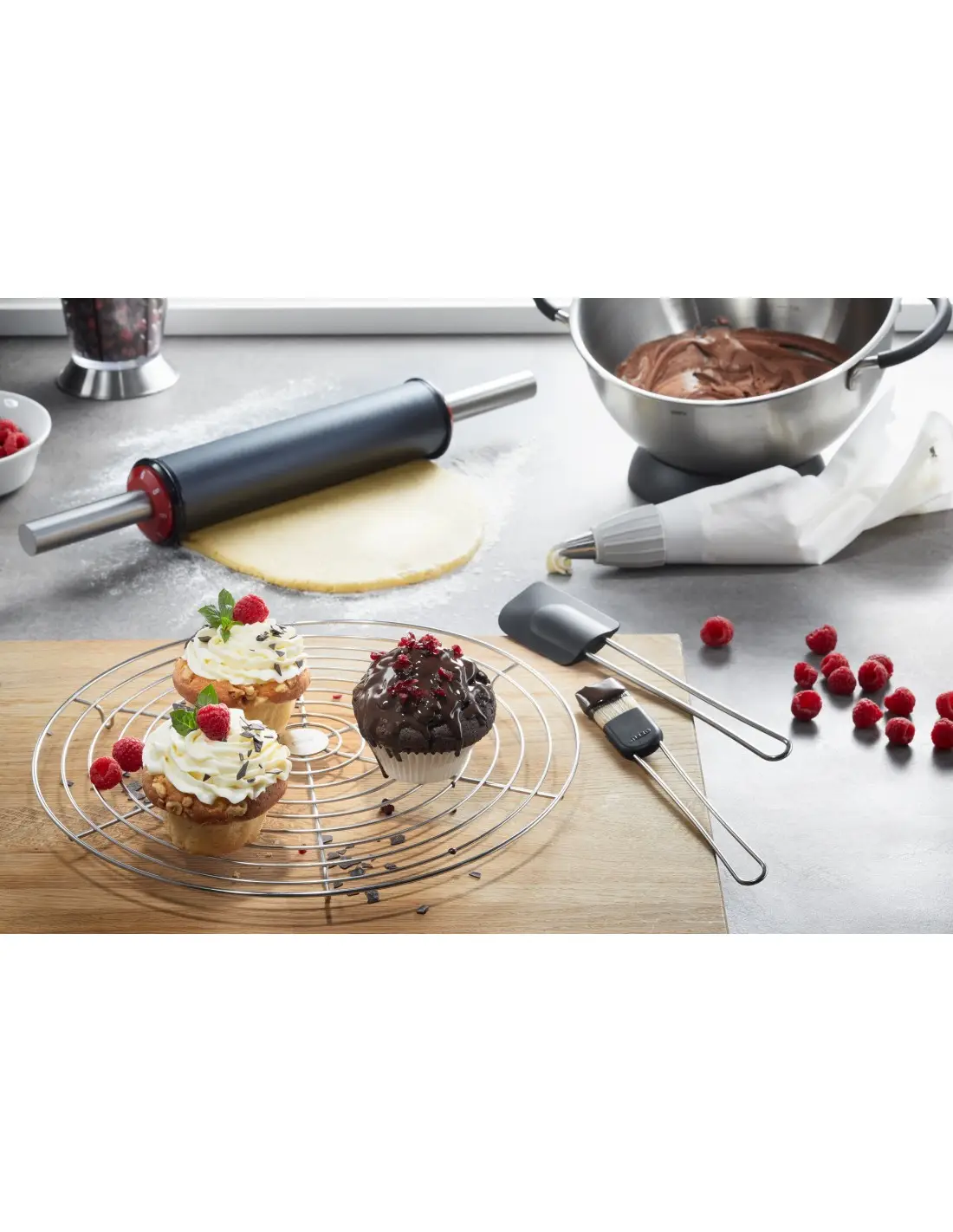 Szpatułka do ciasta CREMOSO wyprodukowana została przez niemiecką markę GEFU, która wyróżnia się na rynku solidnością wykonania swoich artykułów. Szpatułka jest wyjątkowo elastyczna, dzięki czemu bez żadnego problemu opróżnisz miski, garnki i inne pojemniki. Rozsmarujesz nią również krem na ciastach. Produkt wykonany jest z wysokiej jakości stali nierdzewnej i nylonu. Można go myć w zmywarce, posiada aż 5 lat gwarancji.