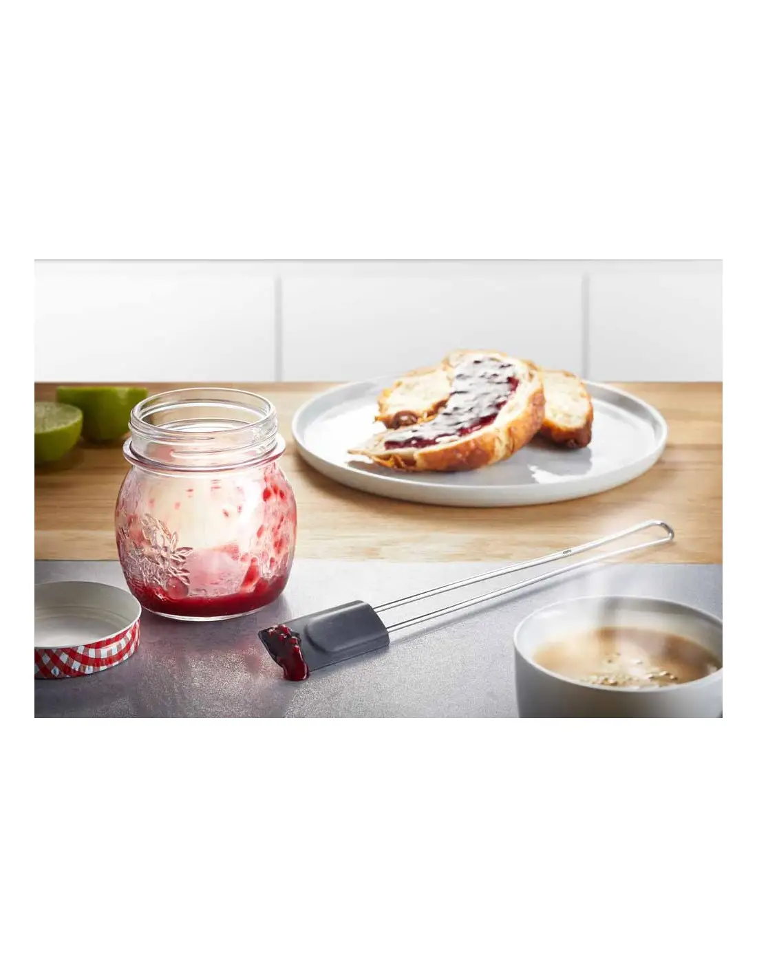 Przy użyciu poręcznej szpatułki CREMOSO precyzyjnie opróżnisz miski, garnki a nawet słoiki. Ponadto bez problemu rozsmarujesz masy na ciastach, deserach czy słonych tartach. Szpatułka wykonana jest z wysokiej jakości stali nierdzewnej i silikonu, który jest odporny na temperaturę do 250 stopni Celsjusza. Żaroodporność pozwala na użycie go na gorących patelniach lub garnkach. Elastyczny silikon gwarantuje zachowanie kształtu skrobaka.