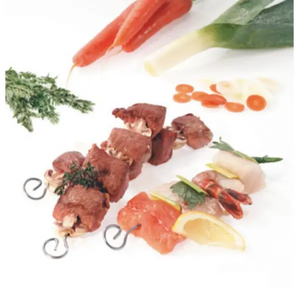 Szpikulce do szaszłyków to niezbędny pomocnik udanego grillowania. Nadają się również do pieczenia w piekarniku. Zostały wykonane z najwyższej jakości stali nierdzewnej polerowanej; łatwo się wbijają. Przeznaczone są do mycia w zmywarce.